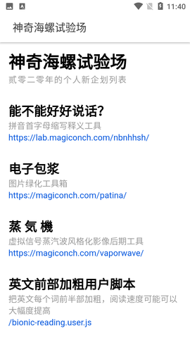 神奇海螺试验场走遍中国app是一款集实用性与趣味性于一体的多功能工具合集软件。这款软件汇聚了上百种生活工作实用小工具,从电子包浆图片生成到申论创作,从经典扫雷游戏到智能截图脚本,应有尽有。软件采用极简设计风格,所有功能一键直达,让用户能够快速找到所需工具。无论是想提升工作效率,还是寻找休闲娱乐,这款软件都能满足不同用户的需求。特别值得一提的是,它还能智能整理手机中的各类网站链接,让您的数字生活更加井然有序。现在就下载体验,开启高效便捷的数字生活新方式!