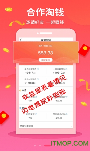 2、平台提供行业领先的超高返利比例,部分商品返利比例高达50%。返利金额可直接提现至支付宝或微信钱包,真正做到购物即赚钱。创新的合伙人推广计划让用户零门槛开启副业,通过社交分享轻松赚取佣金。不受时间地点限制,一部手机就能实现被动收入。在这里,每一次购物都是投资,每一笔消费都能带来额外收益。