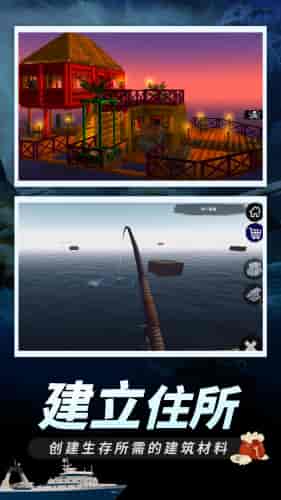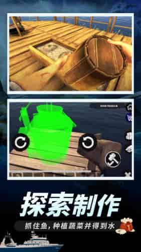 3.木筏建造:采用模块化建造系统,玩家可以从简单的2x2木筏开始,逐步扩展成配备帆船、储物箱、烹饪台的多功能海上家园。