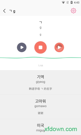 2.内置480个常用韩语字母,支持点击发音功能,每个字母都配有实用单词示例和地道发音示范,让学习更加直观有效。