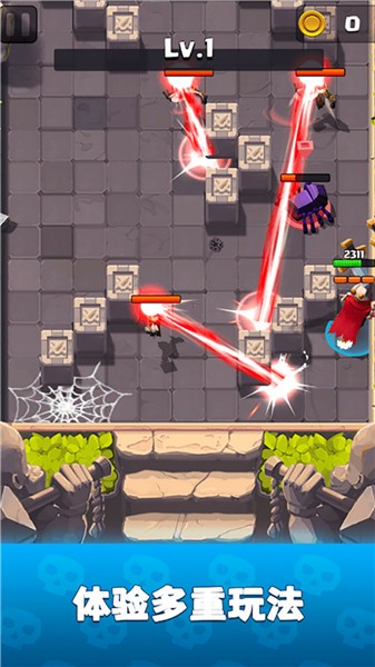 4、强大的弓箭手的对战玩法,在整个游戏中有很多的模式和趣味闯关。游戏特别设计了多种特殊箭矢效果,如冰冻箭可以减速敌人,火焰箭能造成持续伤害。玩家可以根据关卡特点自由搭配装备,创造出个性化的战斗风格。