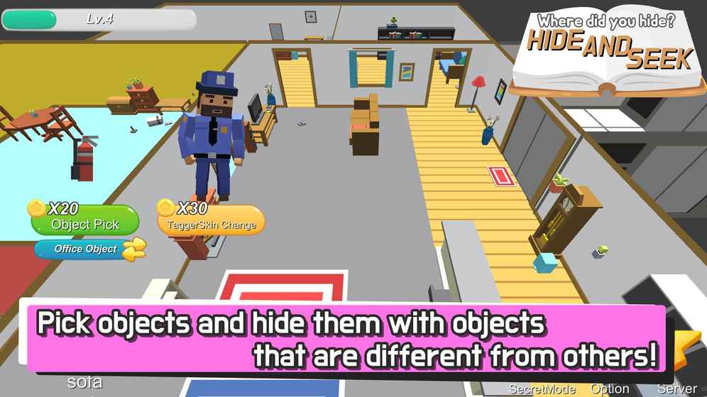 1、游戏提供躲藏者和搜寻者两种截然不同的游戏体验,玩家可以根据心情自由选择,每种身份都能带来独特的乐趣;2、精心设计的地图中布满了各种可以用来伪装的物品和障碍物,合理利用这些元素是获胜的关键;3、游戏内设有多个特色角色可供选择,每个角色都有独特的动作和音效,增加了游戏的趣味性和可玩性。随着等级提升,还能解锁更多特殊装扮和表情动作。