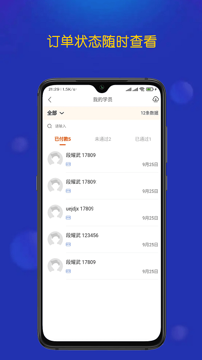 -- 实时推送新订单提醒功能,完整显示学员联系方式、训练需求等20余项详细信息;