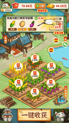 游戏采用简单易上手的操作方式,让玩家轻松体验古代田园生活的乐趣。通过点击放置玩法,你可以自由经营自己的田地,种植各类瓜果蔬菜。每天需要按时浇水施肥,精心照料作物才能获得丰收。游戏完美还原了"日出而作,日落而息"的传统农耕生活,让你在繁忙之余享受片刻宁静。随着等级提升,还能解锁更多农作物品种和经营策略,体验越来越丰富的游戏内容。