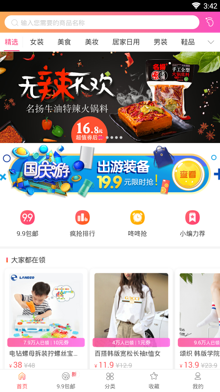 3、独家9.9元特惠专区,精选高性价比商品,让您花小钱买好货;