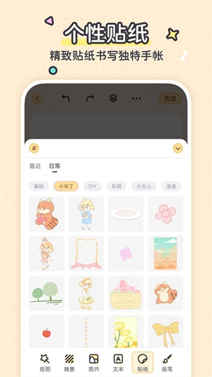布丁手帐app是一款集创意与实用于一体的电子手帐工具,为用户带来全新的记录体验。它不仅提供海量精美贴纸、多样字体和个性化背景,还能满足日常备忘、学习笔记、旅行日志等多样化需求。无论是涂鸦爱好者还是手帐达人,都能在这里找到专属灵感。其简洁直观的操作界面让制作过程充满乐趣,每一页手帐都能成为承载回忆的艺术品。从记账管理到心情记录,从日程规划到创意拼贴,布丁手帐让数字生活同样充满温度与仪式感。
