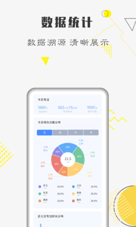 5、数据统计模块会自动生成周报、月报,从完成率、用时分布等多个维度分析用户表现。这些数据可以帮助用户发现效率瓶颈,持续优化时间管理策略。