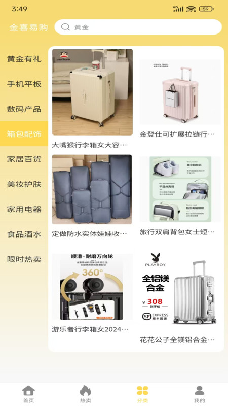 4、或者能够进入商品分类中获取更多类型的商品,用户也可以点击查看;分类页面设计简洁明了,支持多级筛选和排序功能,让购物更高效。