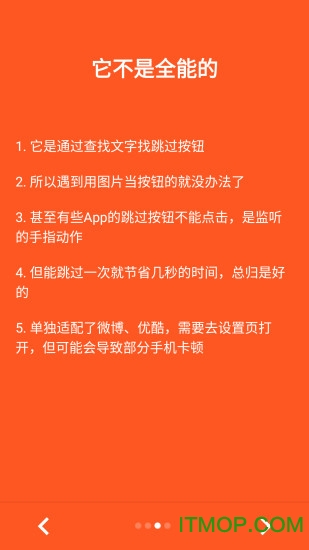 2.跳过引导页:智能识别新手教程、功能引导等8类常见引导页面。