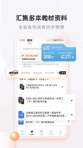 3、同步试卷:汇集全国多省份、小初高各学段九门学科的精选试卷资源,总量超过万份。所有试卷均支持高清打印和在线练习,配有详细解析。每日推送个性化试卷,帮助用户保持刷题节奏,特别适合考前冲刺阶段使用,显著提升考试成绩。