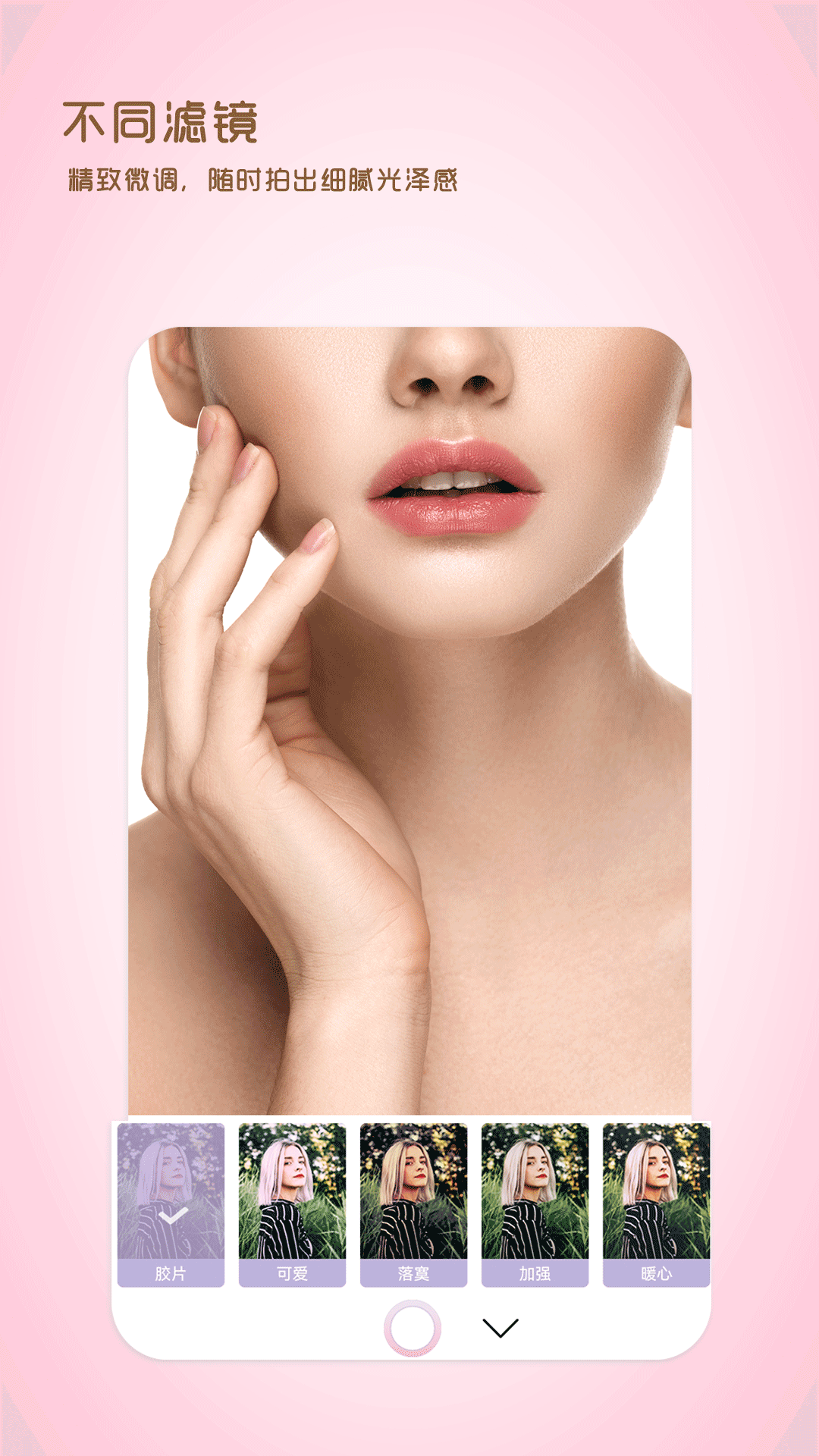 几款精选滤镜可以随意切换,更多高级质感滤镜等你来探索,包括胶片、可爱、暖心等多种风格。你想要的场景世界,随心挑选你喜欢的滤镜,尽情搭配,让照片更具氛围感。滤镜效果经过专业调校,能够完美还原真实色彩,同时提供艺术化处理选项。无论是复古风、ins风还是日系小清新,都能在这里找到适合的滤镜效果。