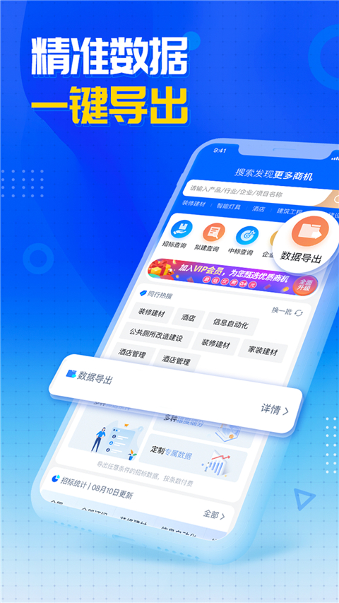 销邦招标平台app是一款专业的手机招投标服务平台,深受政府机构和企业用户的信赖。该平台实时更新全国范围内的招标采购、工程拟在建项目信息,每日新增数据量超过15万条,确保用户能够第一时间获取最新商机。平台覆盖全国各省市及各类招投标行业,提供全面、精准的项目信息,帮助用户高效发掘潜在商业机会。通过智能化的信息推送和个性化的功能设置,销邦招标平台为用户打造了一个便捷、高效的商业信息获取渠道,助力用户在激烈的市场竞争中抢占先机。