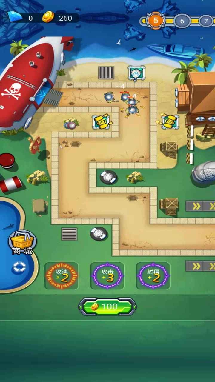 1、游戏内的每一款炮塔武器有着不同的攻击属性。除了基础的火力值差异外,各炮塔还具备元素相克机制,比如火焰塔对木质战舰有额外伤害,而电磁塔能有效瘫痪电子设备,玩家需要根据敌军类型合理配置防御阵列。