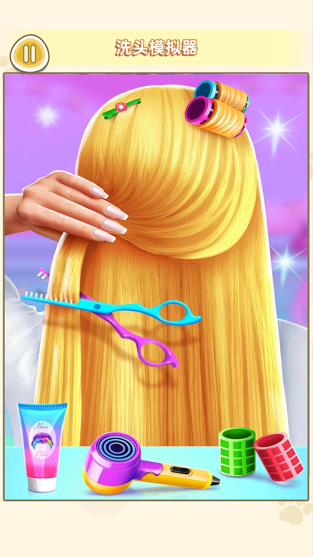 游戏内置了超过200种专业美发工具,包括剪刀、梳子、卷发棒等,每种工具都经过精心设计,操作手感逼真。玩家可以自由调整发丝的长度、层次和弧度,甚至能精确控制每一缕头发的走向。独特的染色系统支持渐变、挑染等多种流行技法,调色板提供上千种颜色选择。随着游戏进程,还能解锁更多高级工具和特效,让你的发型设计更加专业和个性化。
