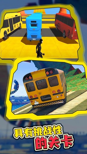 在这个充满速度与激情的世界里,你将驾驶各种型号的巴士挑战极限。游戏设定在一个专门为特技表演打造的虚拟城市,这里有高耸入云的坡道、惊险的环形赛道和令人窒息的空中走廊。随着游戏进程,玩家可以解锁更多隐藏赛道和特殊道具,每个新场景都带来全新的视觉冲击和操作体验。游戏还融入了天气变化系统,雨天湿滑的路面和夜晚昏暗的视线都将成为考验玩家技术的额外挑战。背景故事中,玩家将从一个默默无闻的巴士司机成长为特技表演界的传奇人物。