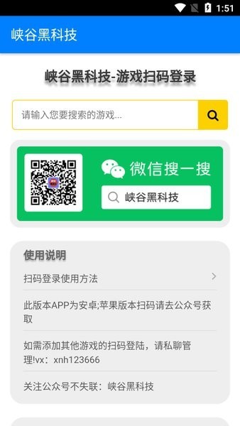峡谷黑科技扫码登录app是一款专为游戏玩家设计的智能上号工具,它彻底改变了传统繁琐的账号登录方式。通过先进的二维码识别技术,用户只需轻轻一扫即可快速登录各类热门游戏,无需反复输入账号密码,大大提升了游戏体验的便捷性。这款app采用轻量化设计,运行流畅不占内存,同时具备多重安全防护机制,确保账号信息安全无忧。无论是想快速开黑还是单人畅玩,峡谷黑科技都能为您提供最贴心的登录服务,让您把更多时间留给真正的游戏乐趣。