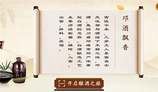 2、通过3D动画和实景拍摄相结合的方式,软件生动展示了制曲、发酵、蒸馏等关键工序的每个细节。用户可以360度观察酿酒设备的结构,了解温度控制、时间把控等专业技巧。