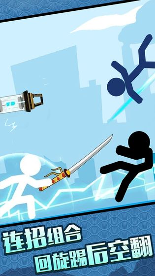 2、玩家可以操控火柴人施展多种华丽招式,包括左右回旋踢、二次回旋踢等强力技能,这些招式不仅能将敌人踢飞,还能造成大量伤害,让战斗更具观赏性;