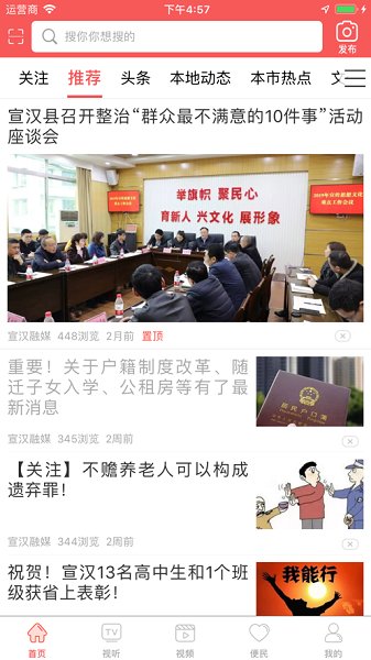 宣汉融媒是一款专为宣汉县居民打造的综合性新闻资讯与便民服务平台,致力于为用户提供最权威、最及时的本地及全国新闻资讯。作为宣汉县官方媒体客户端,它不仅汇聚了本地热点新闻、政务动态、民生政策,还整合了全国重要新闻事件,让用户足不出户就能掌握天下大事。应用内设有丰富的新闻分区,涵盖时政、社会、经济、文化等多个领域,满足不同用户的阅读需求。此外,用户还能通过平台观看当地各类活动直播,参与线上互动,并直接办理各类民生政务事项,真正实现"指尖上的便利"。