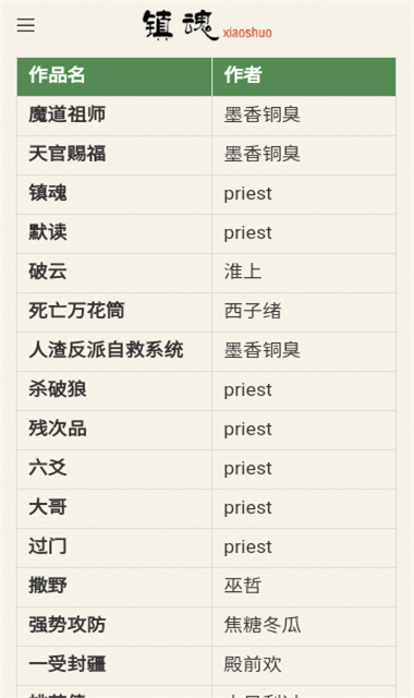 1、镇魂小说网让小说阅读变得更加的简单,喜欢的小说在这里直接搜索。搜索功能支持书名、作者、关键词等多种检索方式,搜索结果按相关度排序,并显示最新章节更新时间,让你快速找到最新内容。