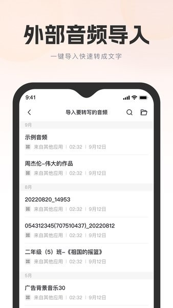 支持从手机、云端或电脑导入各类音频视频文件进行转换,兼容性强。转换过程不会损坏原文件质量,转换后的文字内容可进行二次编辑和校对,确保准确性。
