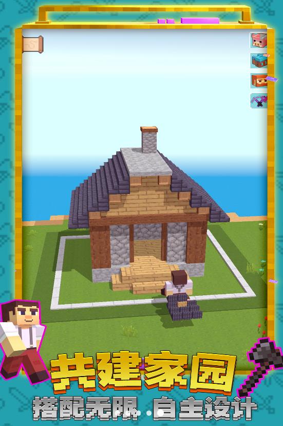 2.玩家可以收集各种方形材料,制作各种精美的建筑和强大的武器。游戏提供超过200种基础方块和装饰物品,从简单的木屋到宏伟的城堡,从石制工具到附魔武器,你的想象力是唯一的限制。独特的合成系统让创造过程充满乐趣。