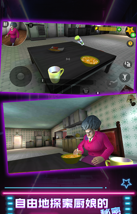 3、是时候通过表演各种各样的活动和释放在她监护下的宠物来吓唬这位令人毛骨悚然的厨娘了。游戏中的互动元素丰富多样,从简单的物品互动到复杂的机关操作,都能带来意想不到的效果。