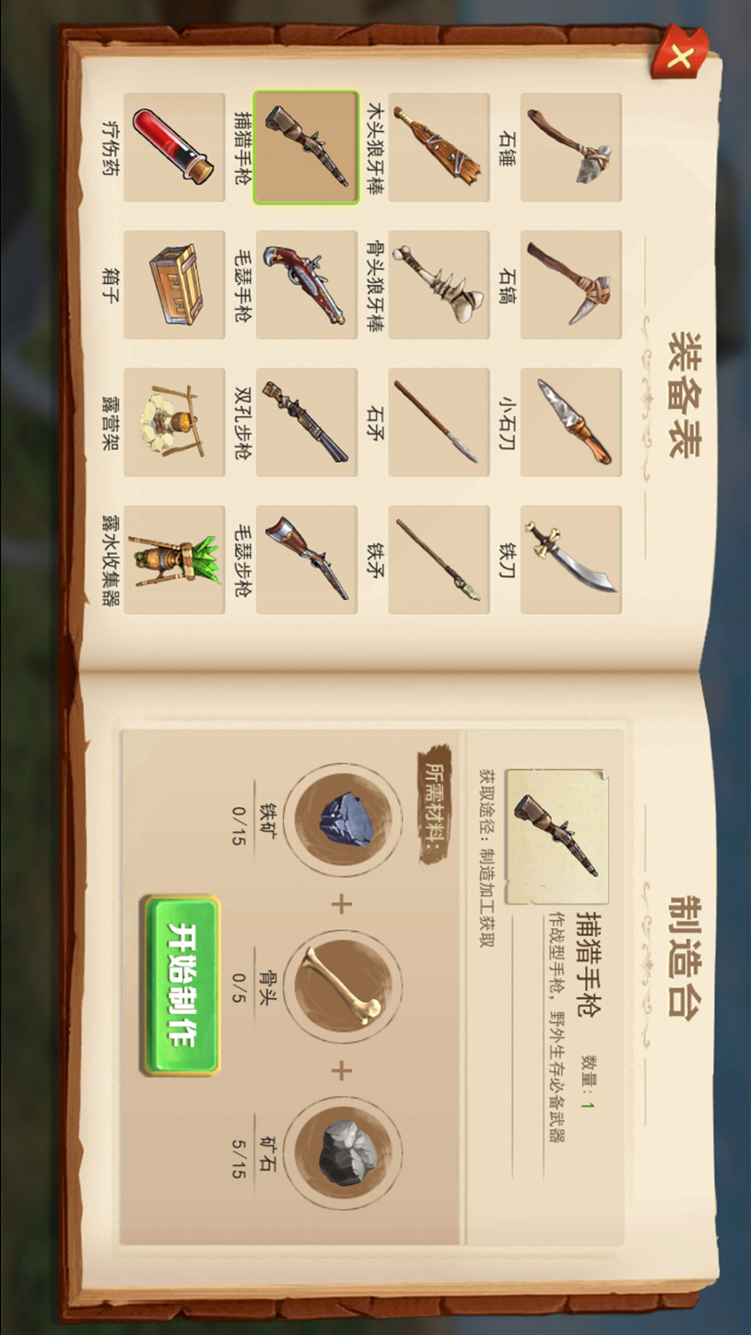 3.工具制作:玩家可以制作各种工具,如斧头、鱼叉、火把等,提升生存能力。制作系统包含150多种可制作物品,支持材料替代和创意组合。