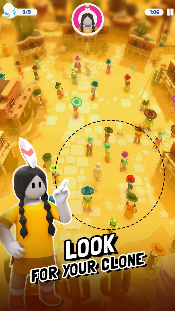 游戏的核心玩法是寻找并融合自己的克隆体。每局游戏开始时,玩家会被随机分配到人群中,必须仔细观察每个角色的行为特征来辨别真伪。找到目标后,需要通过特定的融合机制将其消灭。游戏设置了多层验证系统,确保每次融合都需要经过谨慎判断。随着关卡推进,克隆体会变得越来越难以辨认,场景复杂度也会显著提升。玩家必须善用环境中的线索和道具,在保证自身安全的前提下完成融合任务,最终成为场上唯一的幸存者。