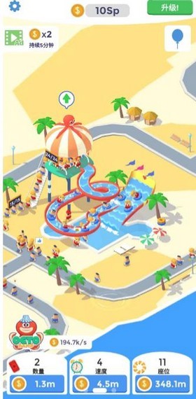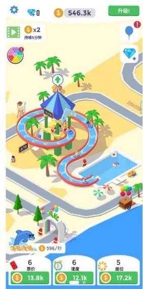 3、游戏打造了一个色彩缤纷的水上乐园世界,搭配身临其境的背景音乐和音效,为玩家带来沉浸式的休闲娱乐体验。