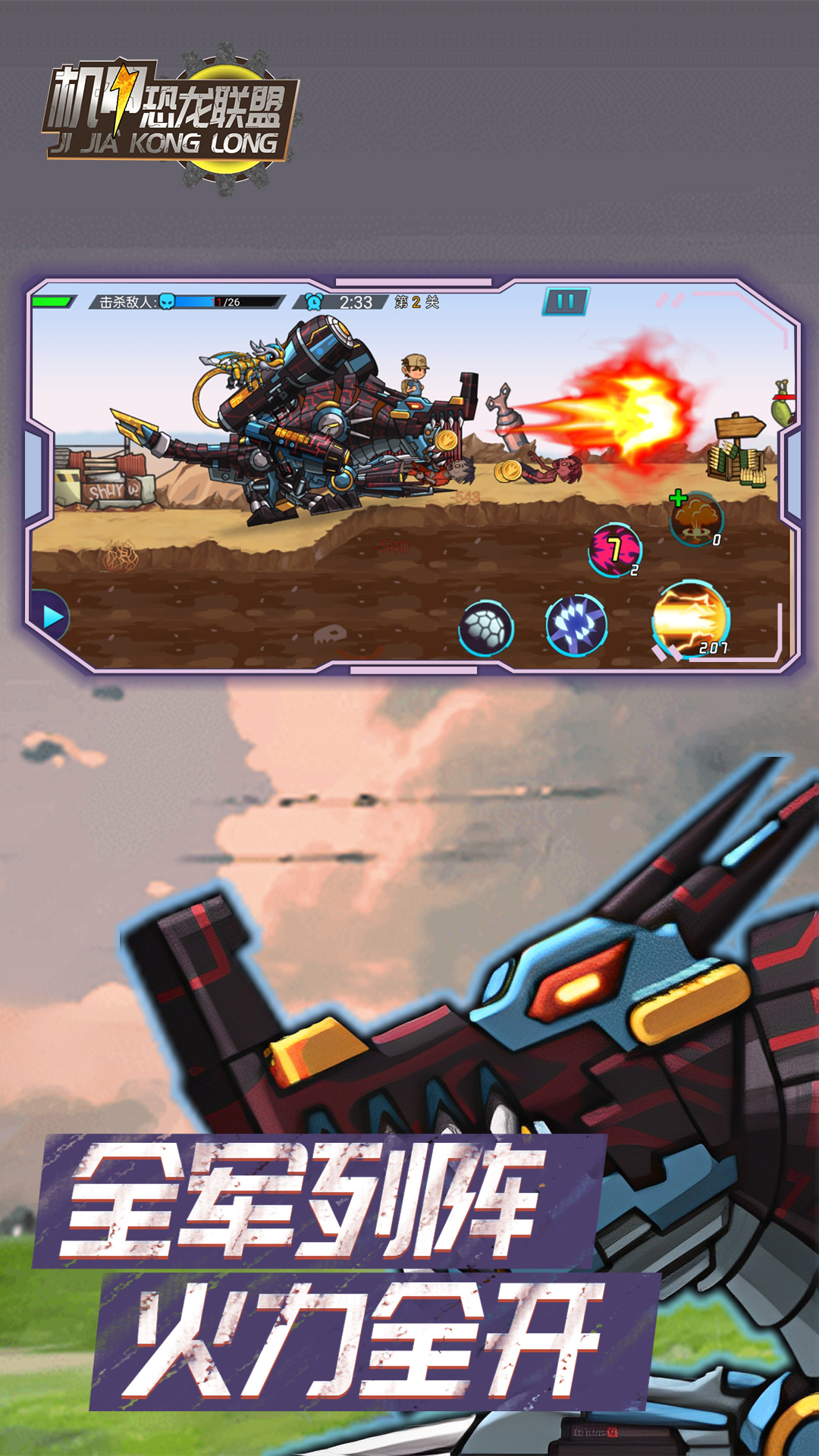 游戏提供了三种主要玩法:冒险副本、排位赛和对决模式,操作简单易上手,即使是新手也能快速掌握。在冒险副本中,玩家可以通过近战撕咬或远程射击两种方式消灭僵尸,拯救人类世界。排位赛支持2v2、3v3和4v4等多种团队对战模式,玩家可以与好友组队,享受合作战斗的乐趣。此外,游戏还加入了推塔玩法,融合了策略塔防元素,为战斗增添更多变数。游戏内的养成系统非常完善,玩家可以通过升级、组装和强化机甲来提升恐龙战力,使其在战斗中更具优势。
