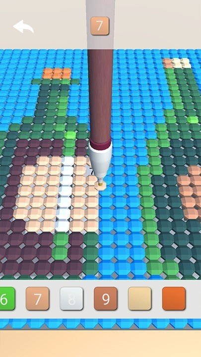 首先观察像素网格中的数字提示,选择对应的颜色进行填充。