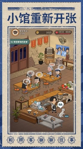 来这家小馆坐坐游戏带你穿越时光回到充满烟火气的90年代,化身成为一家老字号食堂的新任店长。在这个温馨怀旧的经营模拟游戏中,你将亲手操持从早餐到夜宵的全套餐饮服务,解锁上百种地道家常菜谱,从香喷喷的蛋炒饭到爽口的凉拌菜应有尽有。游戏精心设计了完整的人物关系网络,每位常客都带着独特的故事线等待发掘,让简单的经营过程充满人情味。复古像素画风完美复刻千禧年初的市井风貌,每一个细节都在唤醒属于那个年代的温暖记忆。