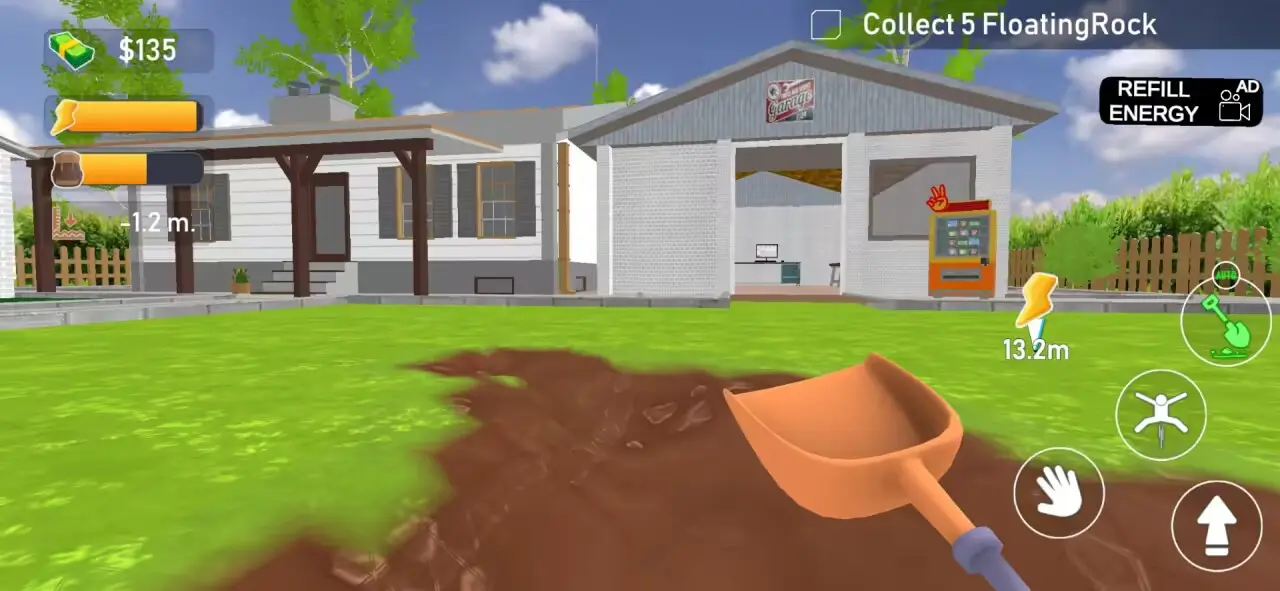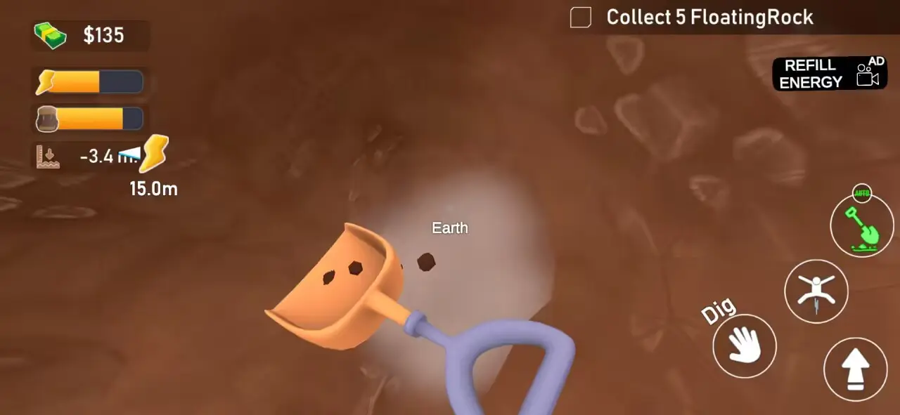 开始挖掘:点击并滑动以挖掘土壤、沙子和岩石层。有效管理您的能量和资源。随着深度增加,挖掘难度也会提升,需要合理分配体力。
