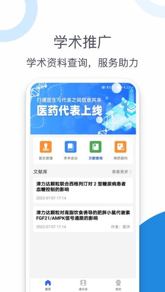 内置专业的学术推广模块,整合了丰富的医学文献、临床研究数据和药品说明书等内容。医药代表可以通过该功能向医生展示最新的药品研究成果,支持多种形式的学术资料分享,包括PDF、PPT等格式,让学术推广更加专业高效。
