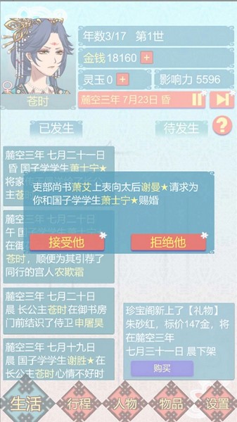 弟弟老送我衣服降我影响力怎么办?答:弟弟送衣服不降声望,也不降影响力。为什么我没有压岁钱?答:生日不能设在一月一日,不能去看国师给自己勾全勤。为什么驸马不穿驸马服?答:老婆的官职高于驸马就不会穿驸马服,而是穿自己的官服。要怎么给人治病?答:医术高了(我是4级了就可以到处治,不过有些伤好像要比较高级,平常的生病4级应该就行了),可以靠挂亲近或者直接拜访来给他们治病。