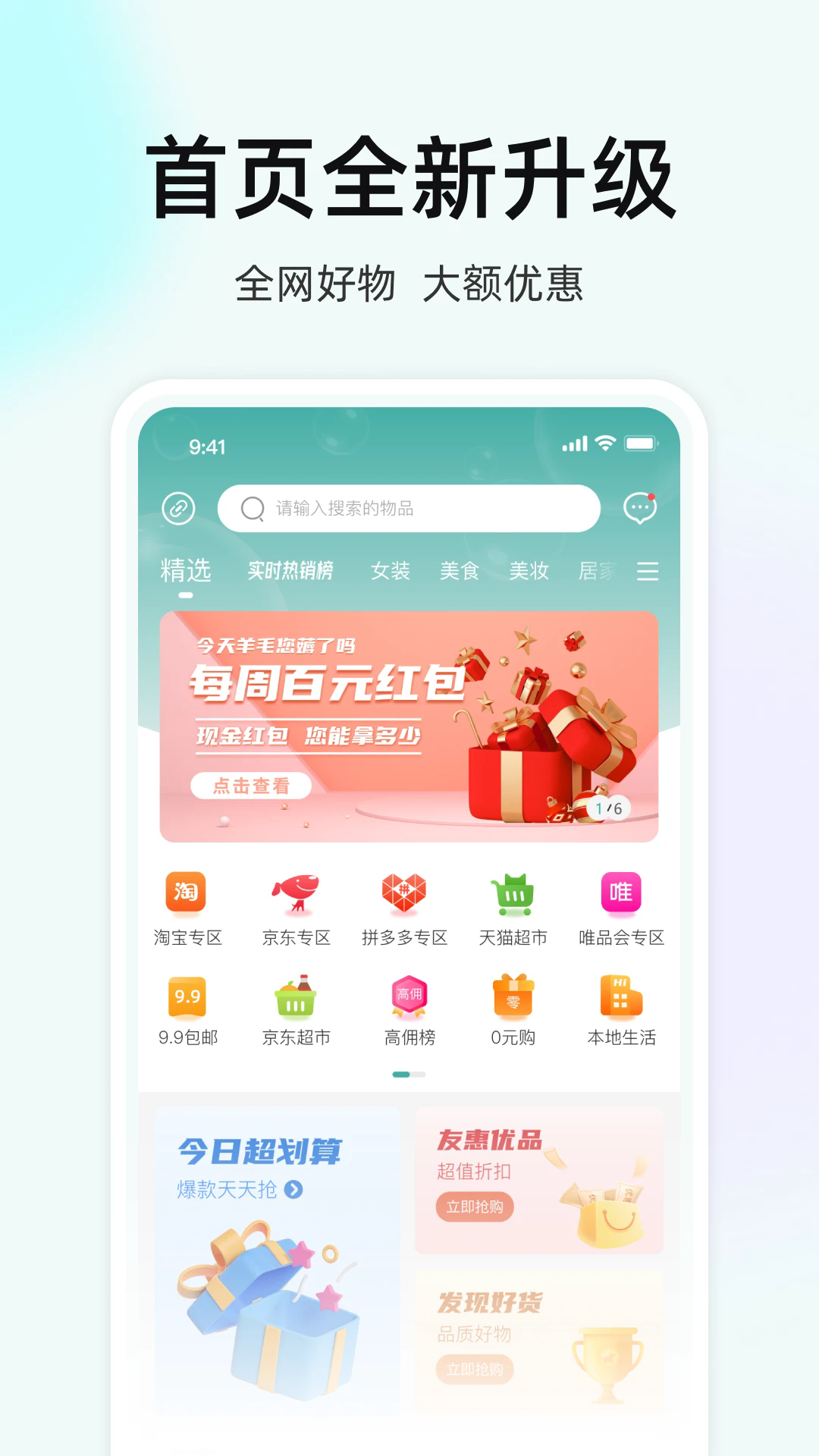 便捷网购,返利,分享省钱,躺赚。简单易用的操作界面,让您轻松完成从领券到下单的全流程,购物返利自动计算,收益一目了然。