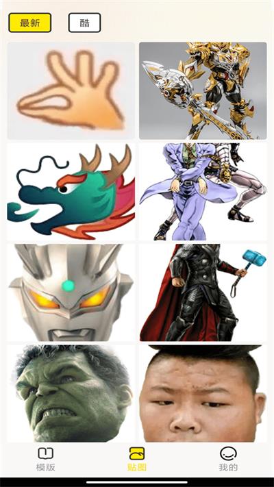 恶搞朋友、搞笑、装 X 、炫富、趣味、王者荣耀、吃鸡、蛋仔派对、原神、头像框、拼图、热门动漫各种模板类型应有尽有。同时紧跟当下潮流,拥有最新的热门凌驾、权威、火影 S 级头像框、摸摸头等模板,让你轻松成为P图大神。