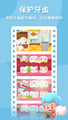 -生活知识:通过模拟刷牙游戏学习正确刷牙步骤,认识各类健康食品与牙齿的关系,在趣味互动中强化健康饮食观念。生动形象的动画演示让抽象概念变得直观易懂。
