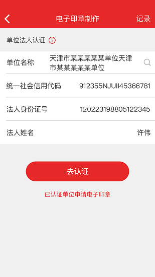 实名认证功能,在提交制作印章的申请之后,需要完成认证的环节,系统才会通过用户的申请,确保安全性。