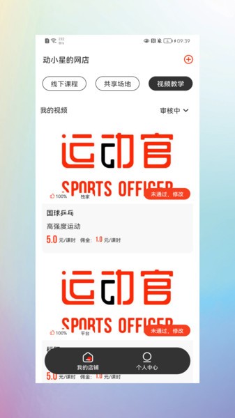 运动官商家版创新性地构建了体育资源共享生态圈。作为资源官(包括体育机构、工作室和个人教练),用户可以将线下课程、共享场地、视频教学等优质资源发布到平台,并自主设定推广佣金比例。通过这种模式,资源官能够借助社群用户的力量实现有偿推广,有效扩大业务覆盖面。同时,平台还为资源官提供了完善的资源管理工具,让资源展示、定价调整和推广效果追踪变得简单高效。