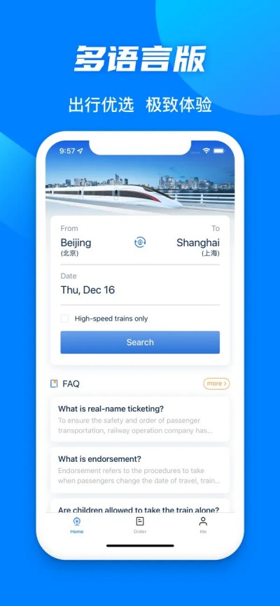 售票无加价:不收取加速包费用、不捆绑保险销售、不收取会员费,购票更放心,让用户享受公平透明的购票环境。信息更准确:第一时间获取列车晚点、停运、出发/到达、车厢车型等实时信息,出行更安心,避免因信息滞后导致误车。功能更全面:整合近百项功能,包括票务预订、生活服务(如订餐和酒店),旅行无忧,满足用户多样化需求。服务更温馨:大字版和无障碍设计,提升用户体验,确保便捷性,让特殊人群也能轻松操作。