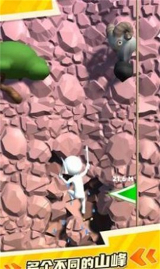 极简操作带来深度玩法,仅需单指点击即可完成所有动作,但想要创造纪录就需要精准控制每次跳跃的力度和角度;沉浸式视听体验采用全3D建模和高动态范围渲染技术,配合逼真的环境音效和角色配音,营造出身临其境的攀登氛围;海量创意关卡持续更新,超过100个精心设计的挑战关卡各具特色,保证游戏的新鲜感和可玩性;全球排行榜系统让竞技乐趣倍增,玩家可以与世界各地的好友一较高下,争夺"巅峰王者"的荣誉称号。
