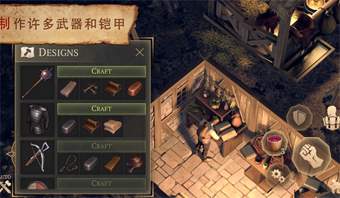 学习制作 建造工作台,制作新资源,发现新设计,创建现实的中世纪武器和铠甲,同瘟疫之地最危险的居民战斗。制作系统非常丰富,从简单工具到复杂机械应有尽有。
