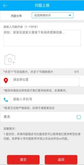 家里装修有垃圾需要清运,可通过APP提交清运垃圾需求,系统会自动匹配最近的清运服务商。为市民提供在线的政策解读、办事指引等便民的咨询服务,解决各类城市管理相关问题。发现城市管理中的问题可立即上报,受理、转派、办结、结案等环节能一目了然,全程透明可追溯。此外,APP还提供实时天气预警、公共设施查询等贴心功能,全方位满足市民日常生活需求。