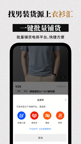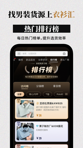 衣衫汇男装网批是一款专为男装批发采购打造的智能软件app,致力于为用户提供高性价比的采购体验。平台汇聚了全国优质男装批发市场资源,以极具竞争力的价格和严格的质量把控,满足从基础款到潮流款的多样化需求。通过智能推荐系统和精准搜索功能,用户可以轻松找到心仪商品,避免中间商加价。7×24小时专业客服团队全程护航交易安全,完善的售后保障体系让采购无后顾之忧。无论是实体店主、网店商家还是个人创业者,都能在这里享受便捷高效的一站式采购服务。