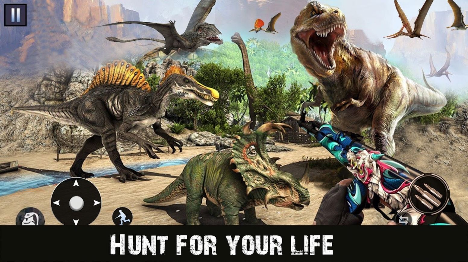 FPS猎杀恐龙射击是一款令人肾上腺素飙升的3D狩猎冒险游戏,将玩家带入一个充满原始生物的危险世界。在这个逼真的虚拟环境中,玩家将化身为一名技艺高超的神枪手,面对来自史前时代的各种凶猛恐龙。游戏不仅提供了紧张刺激的狩猎体验,还融入了丰富的任务系统和多样化的玩法模式,让每位玩家都能找到属于自己的冒险乐趣。