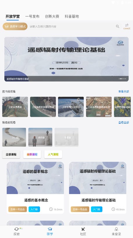 推荐优质课程,在线学知识。平台精选了遥感技术、地理信息系统、卫星应用等领域的专业课程,涵盖从入门到进阶的各个层次,满足不同用户的学习需求。