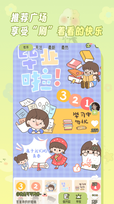 拥有上千款风格各异的贴纸素材,包括时下最流行的咕卡元素、闺蜜认证贴纸等,满足各种场景需求