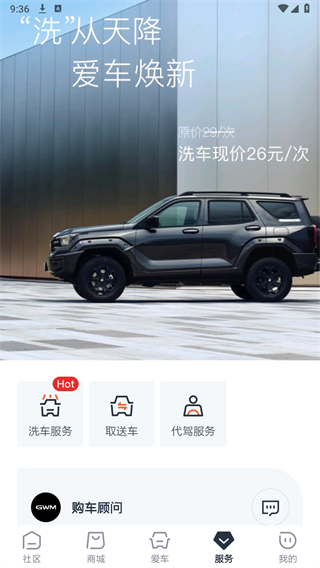 在首页底部导航栏选择“爱车”模块,这里集中了车辆管理、服务预约等核心功能。
